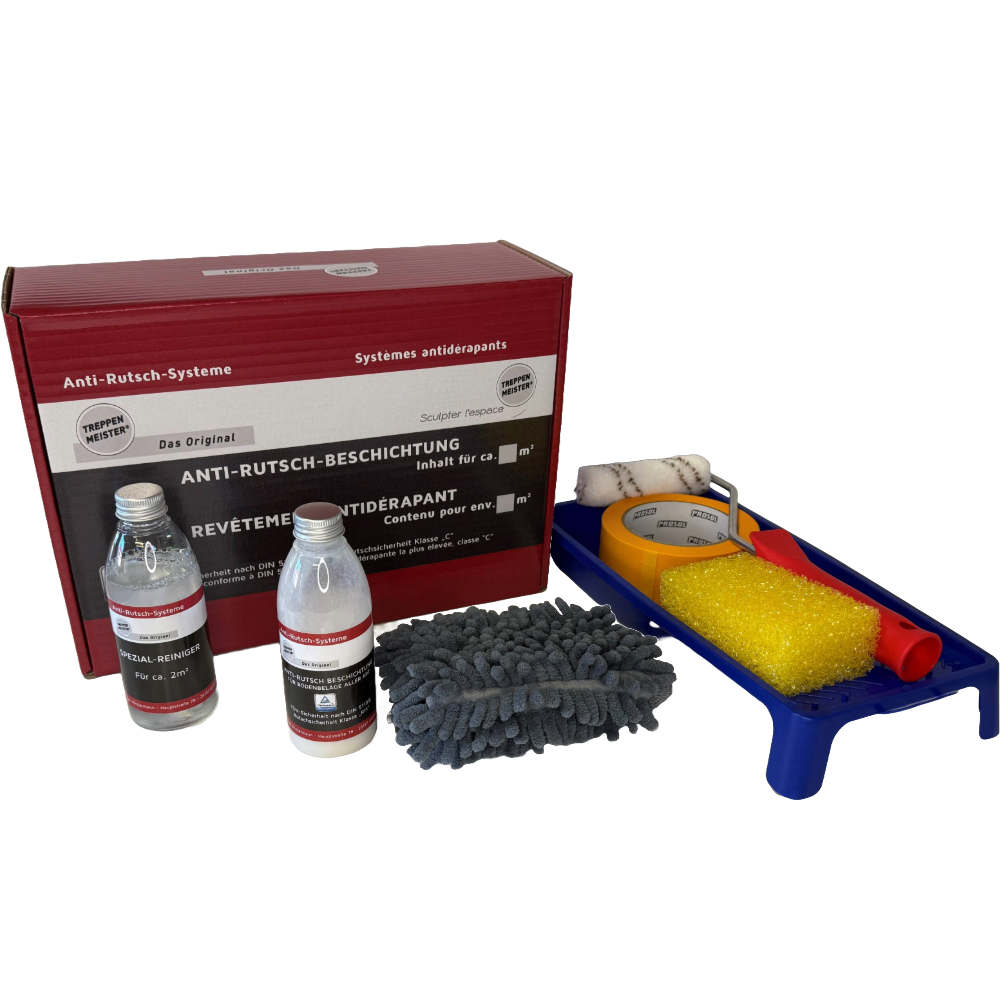 Der Rutschschutz small ist die ideale Wahl, wenn Sie nur kleinere Flächen aus Stein, Granit, Holz oder anderen Materialien mit einer sicheren Antirutschbeschichtung versehen wollen. Der Rutschschutz small reicht für eine Fläche von bis zu zwei Quadratmetern. Die anschließende Rutschhemmung bietet höchste Rutschsicherheit der Klasse C und ist geprüft nach TÜV DIN 51097. Überzeugen Sie sich gerne von der erstklassigen Qualität unserer Rutschschutz-Produkte und fordern Sie unser Haptikmuster an, das für Sie bei einem anschließenden Kauf vollkommen kostenlos ist.